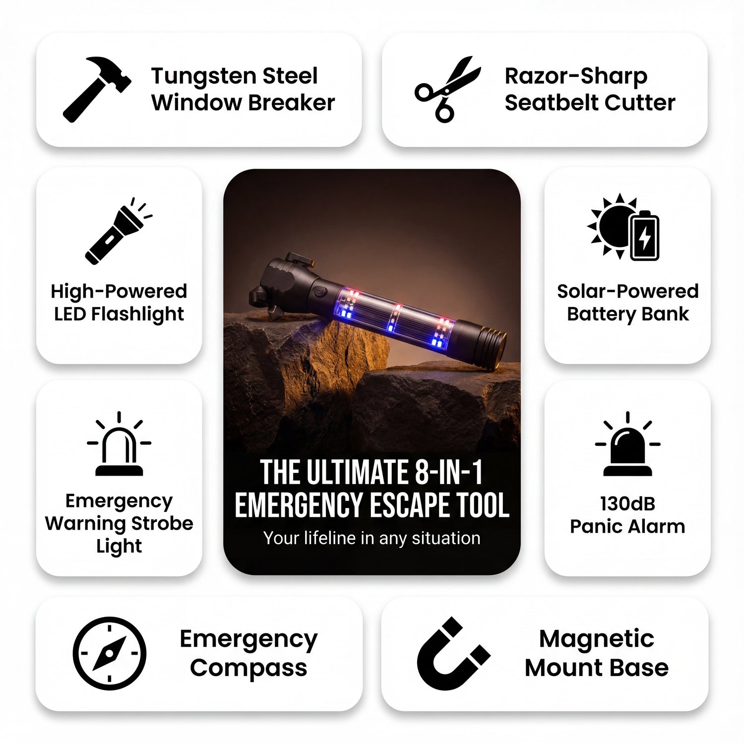 Ultimate Safety Hammer | 8-in-1 Emergency Escape Tool