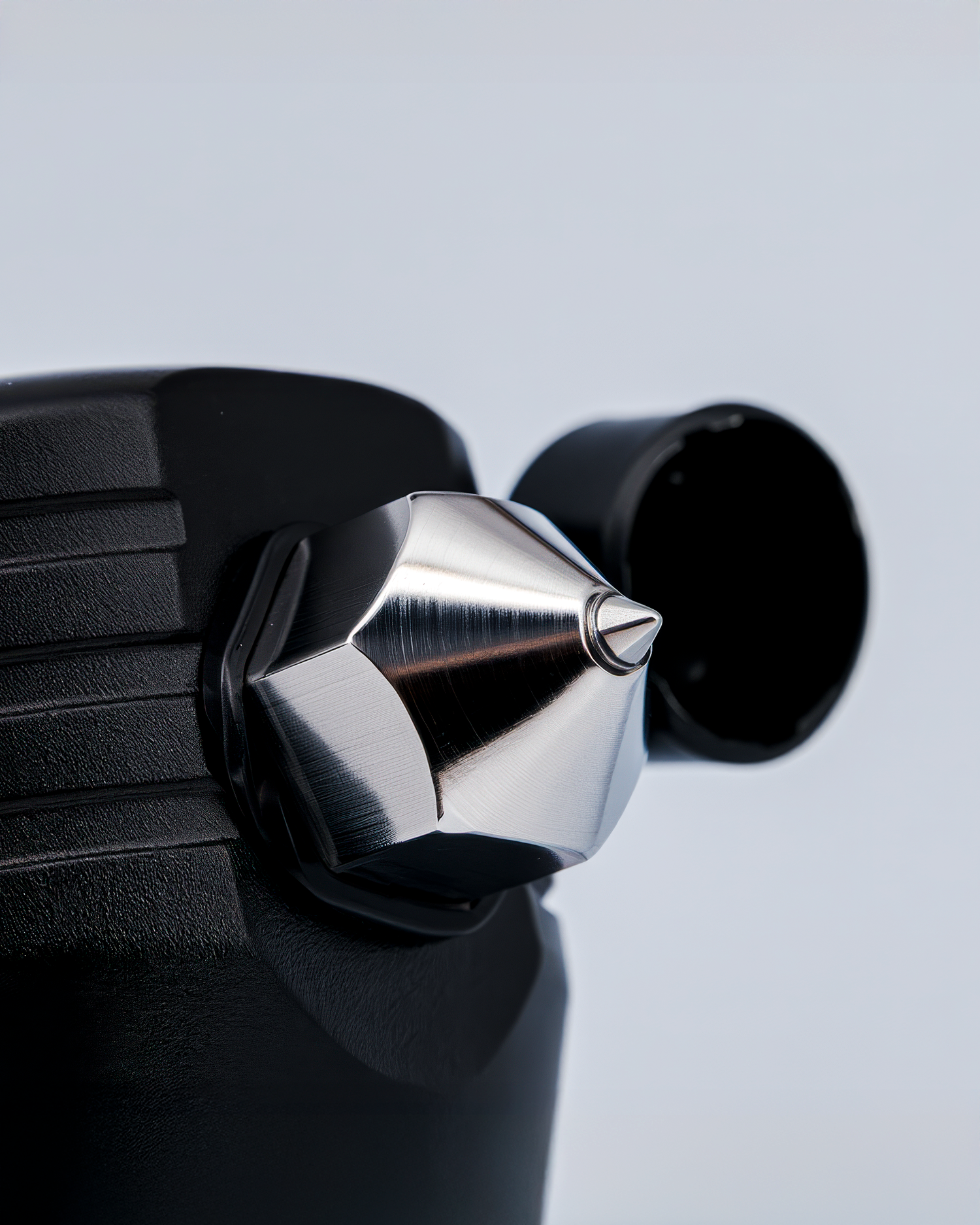 This tungsten steel tip shatters tempered glass on contact. Press it against the window corner. Glass breaks. Cut the seatbelt with the recessed blade. Out in 10 seconds.